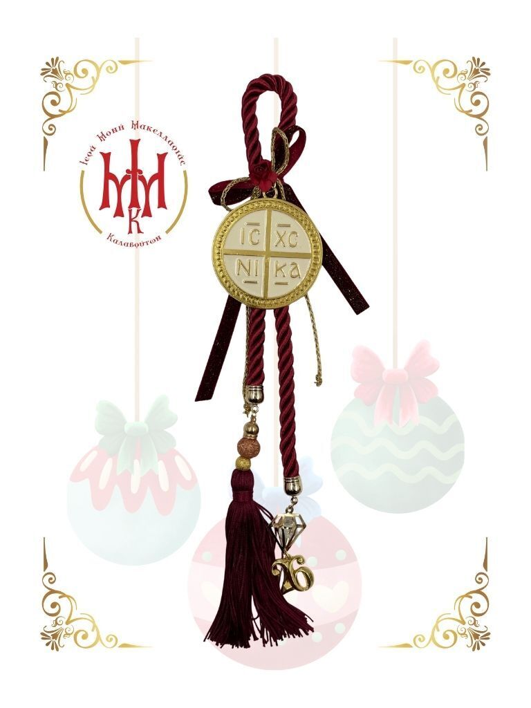 Εντυπωσιακό χειροποίητο γούρι με μεταλλικό σύμβολο IC XC NIKA ("Ιησούς Χριστός Νικά"), σύμβολο πίστης, νίκης και θεϊκής προστασίας.